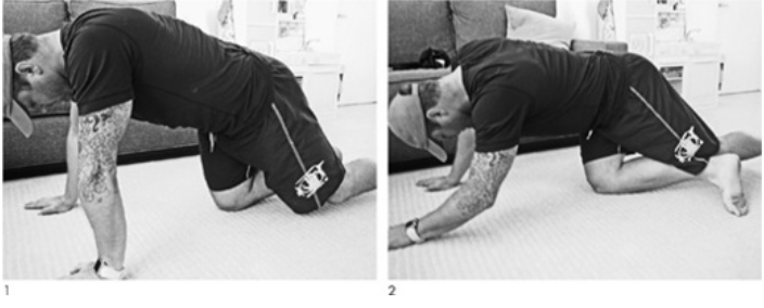 Get on all fours, knees under the hips, and remove all weight from one