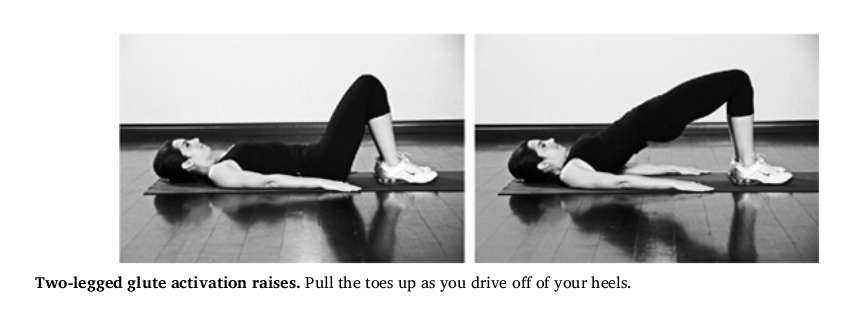 Start with ten repetitions of the double-leg glute activation seen in